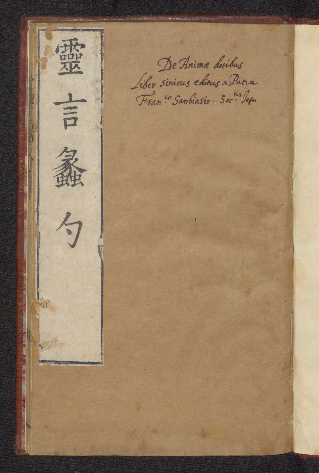 Sanbiasius Franciscus. “De Animae Dotibus”. Sinice in 4°. X.(7.)7.