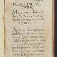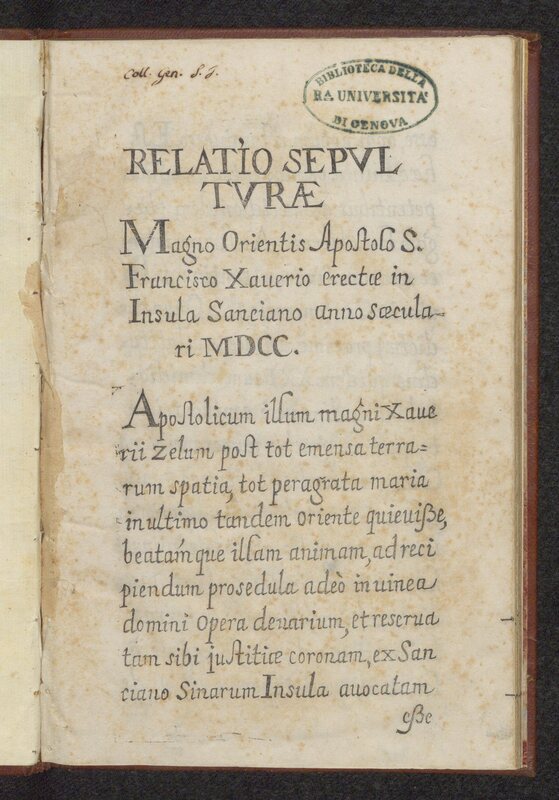 (Latin) Relatio Sepulturae Magno Orientis Apostolo S. Francisco Xaverio erectae in Insula Sanciano