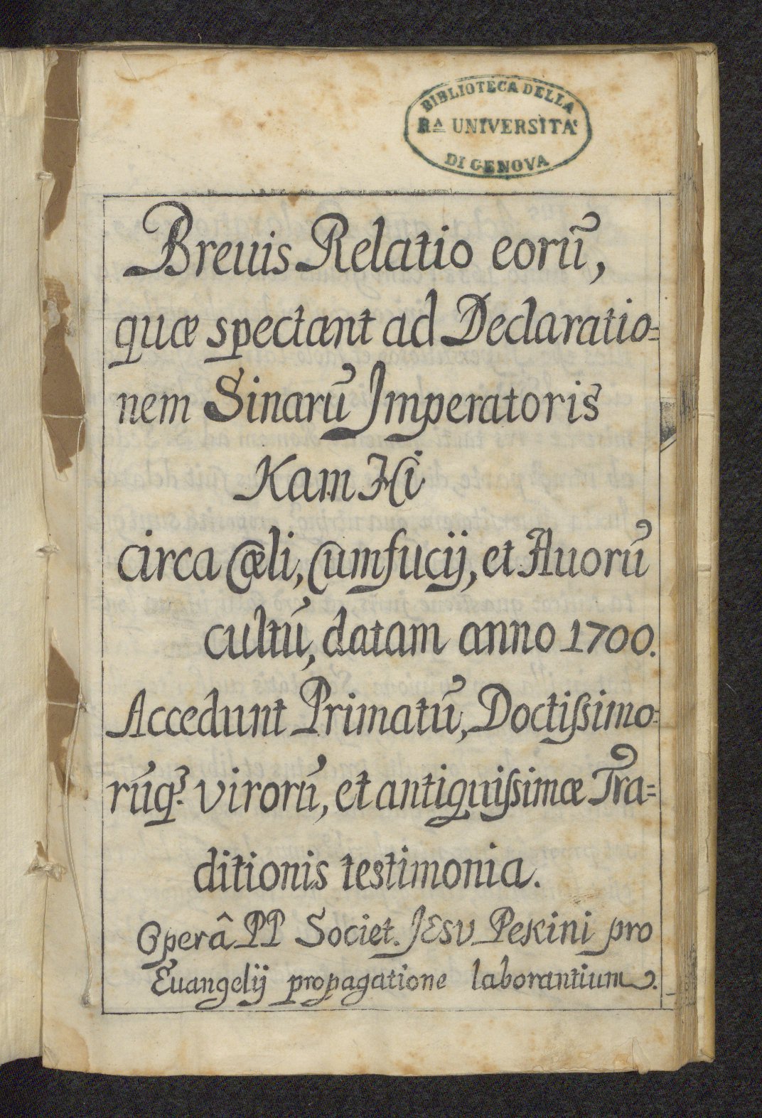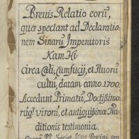(Latin) Brevis Relatio eorum, quae spectant ad Declarationem Sinarum Imperatoris Kam Hi circa caeli, Cumfucij, et Avorum cultum